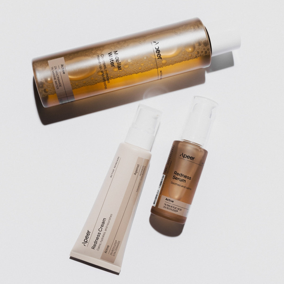 Hos Apeer udvikler vi vores produkter med et klart formål: at skabe hudpleje, der gør en reel forskel. Hver formel er nøje sammensat med aktive ingredienser og plantebaserede ekstrakter, som er udvalgt for deres dokumenterede effekt på hudens sundhed. Resultatet er avanceret hudpleje, der arbejder effektivt og skånsomt – hver dag.